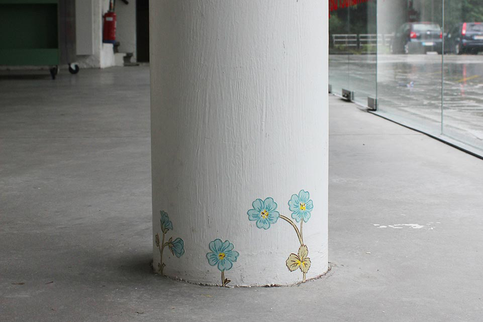 Peu nombreux sont ceux qui l'ont vue mais c'est justement ce qu'il recherche. Coller une petite marguerite découpée dans du papier peint sur un pilier, au ras du sol*, comme si elle avait poussé là sans qu'on sache trop pourquoi, cela relève d'une volonté de ne pas vouloir attirer le regard sinon d'une étonnante discrétion qui n'est pas sans rappeler les profondes relations de sens que ce mot entretient avec l'idée de discernement. Or Régis Perray ne manque ni de l'un, ni de l'autre. Il n'a pas son pareil pour s'immiscer dans un contexte et y trouver sa juste place. Aucune esbroufe, aucun tapage. Tout juste cette façon bien à lui de répliquer, le sourire au coin des lèvres, en cherchant à surprendre le regard de l'autre. Avec rigueur, obstination et fantaisie. D'ailleurs, ce sont là trois termes qui caractérisent non seulement sa démarche d'artiste mais aussi sa personnalité.